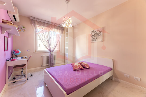 The apartment is located near the Heaven Sports Center in the Torraccia neighborhood. It features comfortable common areas, including a large air-conditioned living room with a balcony and TV, and a fully equipped kitchen, ideal for socializing.